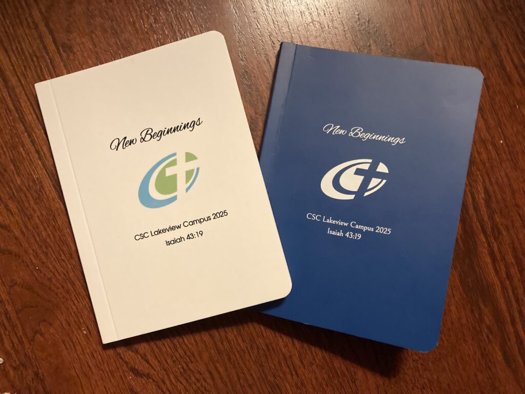 So, you’d think this was ENOUGH Holy Spirit AWE, for one day, wouldn’t you?! Think again! As I was leaving Lakeview Campus, that morning, I noticed a pile of journals on the table. I love to take notes during sermons, as I collect extrinsic evidence of the ways that God uses, to speak prophetically, to me. I took a closer to look at the pile of journals, and I GASPED. See below, what I saw, and then you will understand why I gasped!